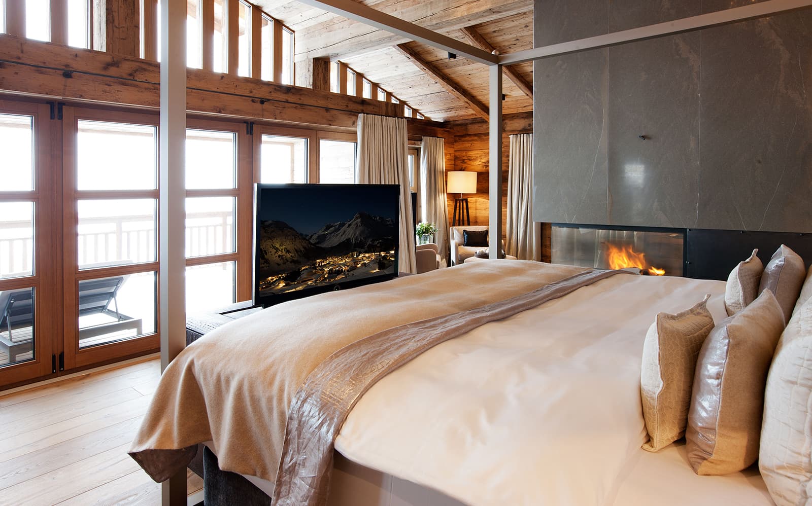 The quiet power and tranquillity of the mountain world of the Arlberg region can be felt from the very first glance at Chalet N. With its consistent wooden architecture and original construction, it blends stylishly into the landscape of the Alpine countryside, and yet the clear structure of its windows and balconies makes it an architectural gem. This clarity is also the basis of the design of the interior of Chalet N with its total of ten suites – including two executive suites, one junior suite and one children’s suite. The extraordinary penthouse suite with an open fireplace in the middle of the living room meets the highest demands.